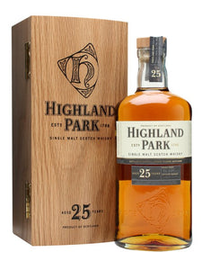 Highland Park's excellent 25 year old whisky. A mix of ex-sherry and bourbon cask matured whisky to balance honey with rich fruit, as well as a lick of the distilleries trademark Orcadian peatiness.